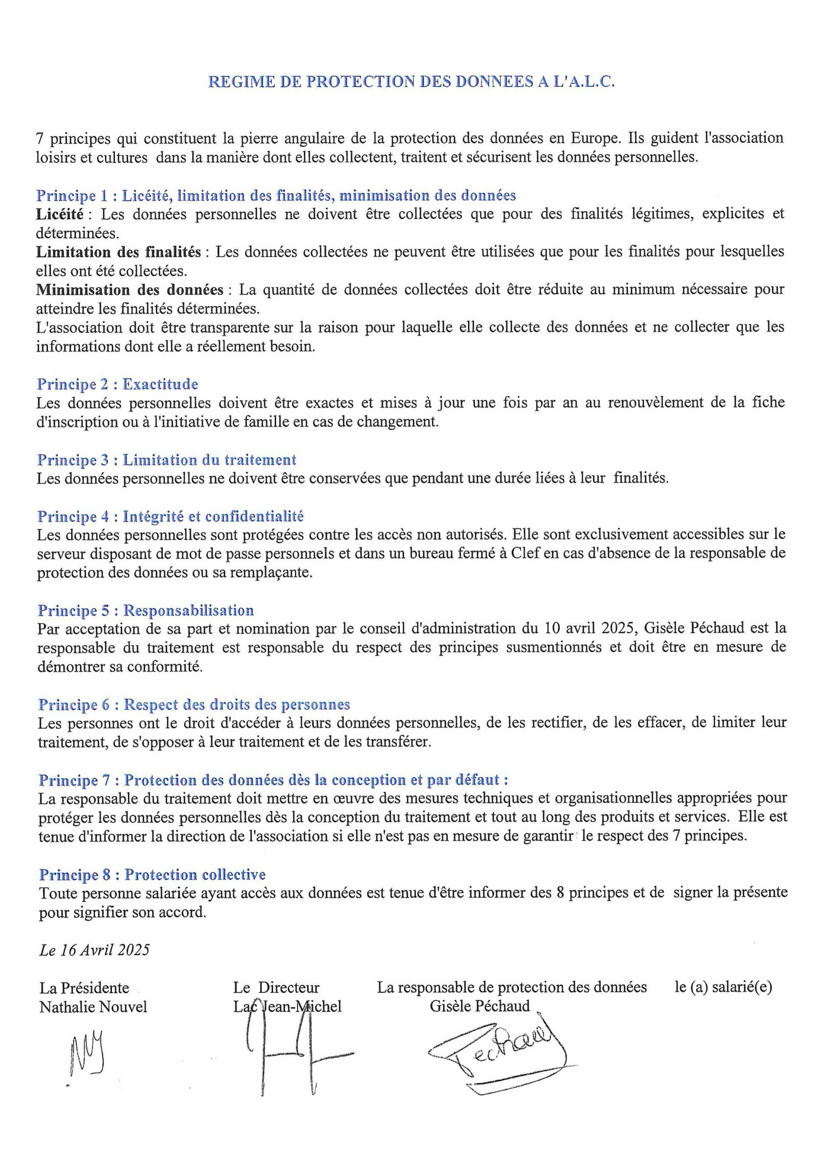 REGIME DE PROTECTION DES DONNEES